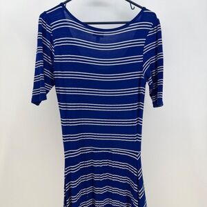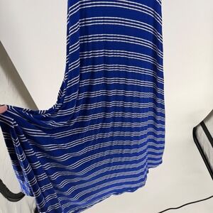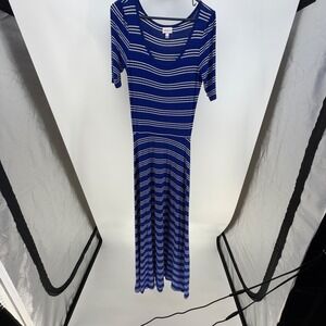 LuLaRoe Ana Maxi Dress Women XS Blue White Striped Stretch Short Sleeve Modest