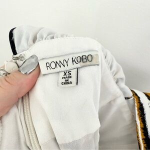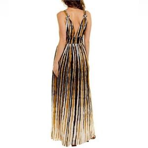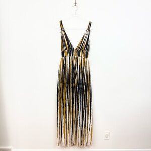 Ronny Kobo Sallee Pleated Maxi Dress Striped Plunge Neck Statement Dress XS