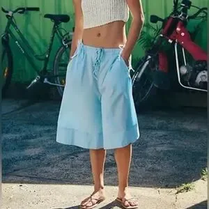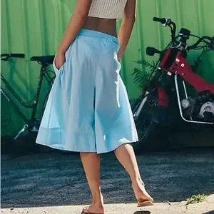 Features: Pull-on design, drawstring detail, side pockets, below-the-knee length