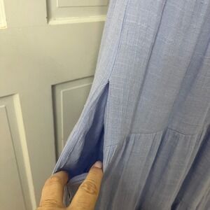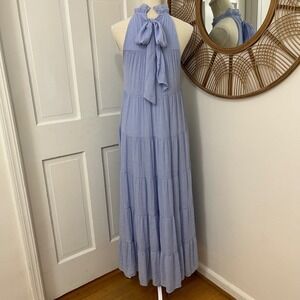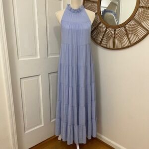 Indigo Soul Maxi Dress Sz S Tiered Boho Coastal Resort Wedding Guest Cotttage