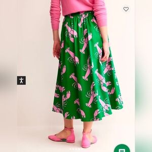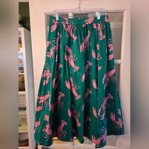 Boden Green Midi Skirt with Pink Lobster Print - Size 12R
