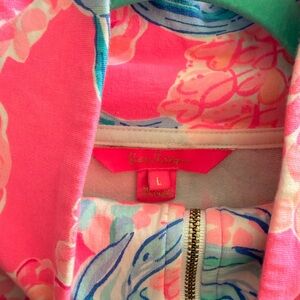 Lilly Pulitzer Pink Pinking Positive Large Zip Up Popover