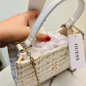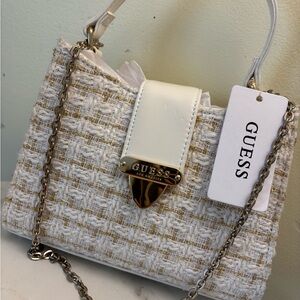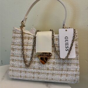 GUESS Cream Tweed Top-Handle Chain Satchel 7.5 by 8 inches Pretty cute