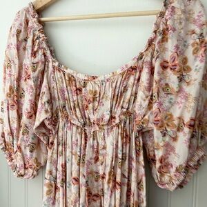 ByTimo Floral Babydoll Mini Dress Small Feather Print