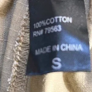 Label reads size S. Actual measurements are provided below to ensure proper fit.