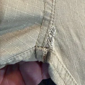 Condition of these pants is Good Pre-Owned with no spots or stains but does have one small wear hole at the top of the inseam. Please see photo of issue. Other than this small issue, the pants are in excellent condition.