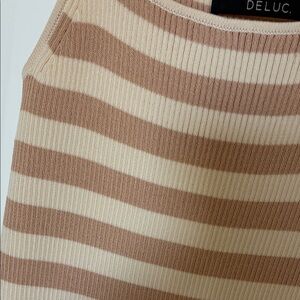 Deluc Beige & Cream Striped Maxi Slip Dress