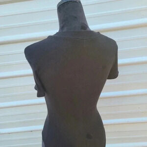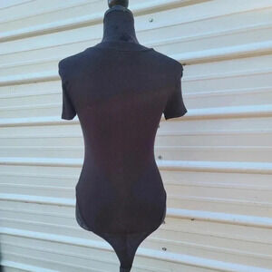Marci Women's Bodysuit Sz S Black Stretch Ribbed Short Sleeve Sleeve Rayon Snap