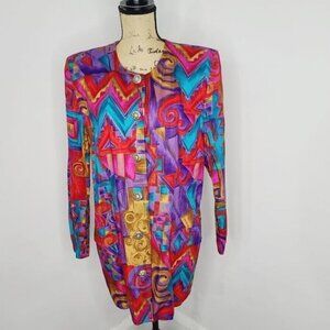 Vintage 90s Colorful Artsy Blazer / Eclectic Funky Neon Pink Red