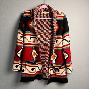 Magnolia Lane Aztek Med Red Southwestern Geometric Open Front Cardigan Sweater