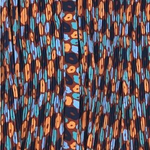 Features: Plisse material (pleated), full button down with a fabric placket for a tailored look, sleeveless, whimsical flower design. structured collar.