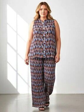 Wildfang | Empower Plisse Flower Print Sleeveless Blouse | Size 1X