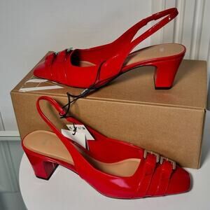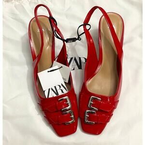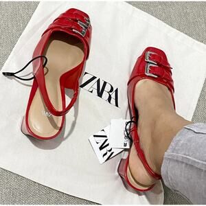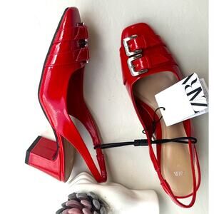 ZARA Red Patent Slingback Heels NWT | Double Buckle | Blogger Fave