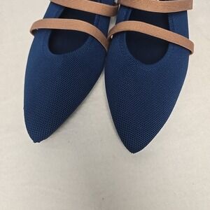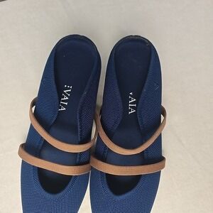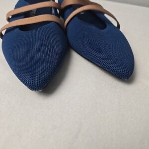 Good Condition, Vivaia Elle Pointed Toe Mules, Blue / Brown Strap, Size 8 US (39 EU)