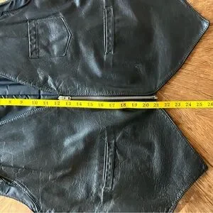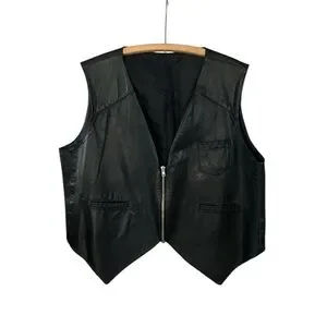 💥2 for 1💥Vintage Drospo Black Leather Biker / Moto Zip Up Vest - Size L/XL