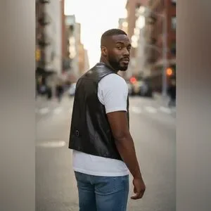 This vintage leather moto / rocker vest from Drospo is a made from durable leather providing abrasion protection and a classic, edgy look.