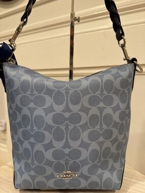 Coach Abby Duffle Blue Signature Monogram Hobo Bag