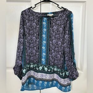 LOFT Women’s XS Purple, Blue, and Black Floral Long Sleeve Blouse