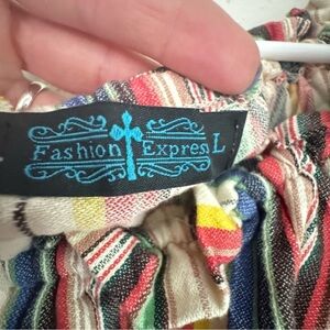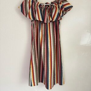 Express Striped Off-the-Shoulder Cotton Boho Smock Sundress w/ Pockets Sz L