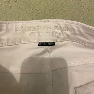 White skinny jeans from American Eagle Outfitters. Clean, streamlined silhouette. Soft-stretch fabric for comfort. Versatile for casual or dressed-up looks.