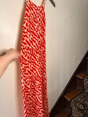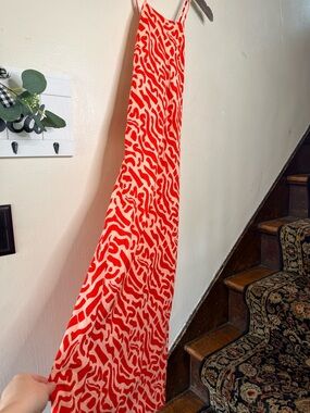 Red Patterned Slip Maxi Dress