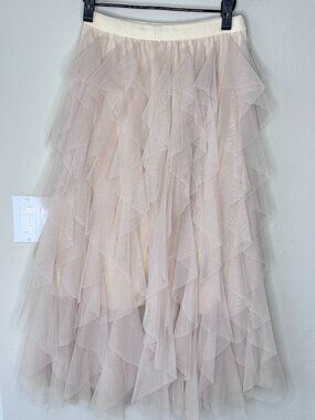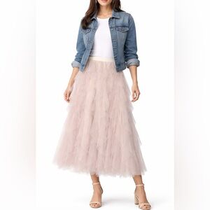 Blush Pink Tiered Tulle Midi Skirt | Romantic Flowy Ruffle Skirt | Elastic Waist