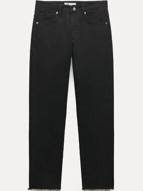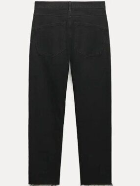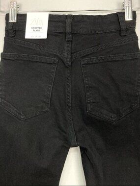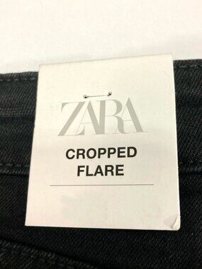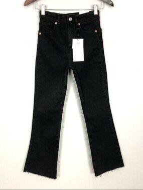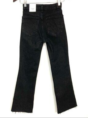 New Zara Cropped Flare Jeans High Rise Frayed Hem Black