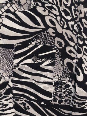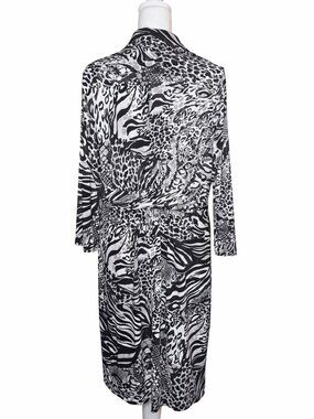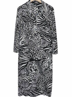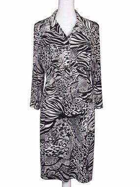Vintage 90s Animal Print Shirt Dress Size 12 Zebra Leopard Abstract Midi