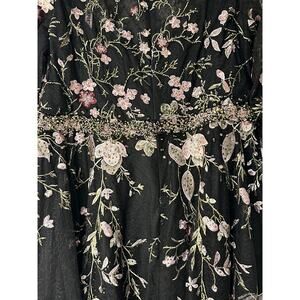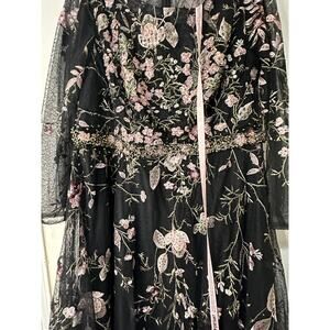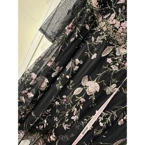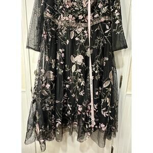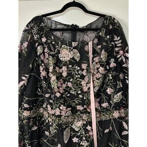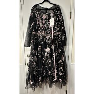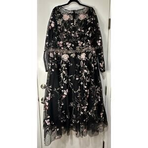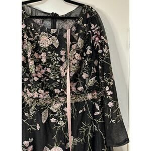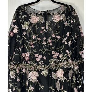 Mac Duggal Floral Embroidered Long Sleeve Dress Black Pink Plus Sz 22 NWT 20476