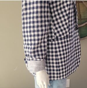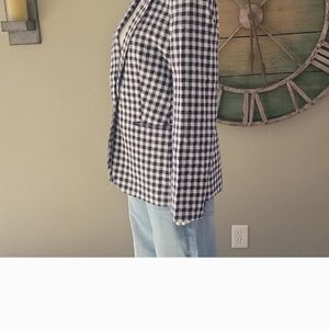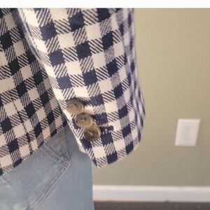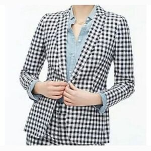J. Crew Factory Linen Blend Navy And White Gingham Single Button Blazer