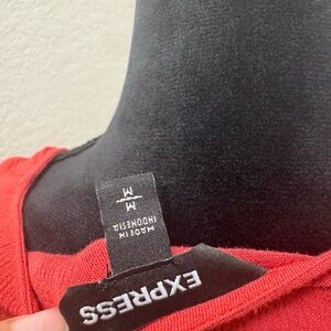 Express Red Long-Sleeve Smocked Peplum Wrap Blouse