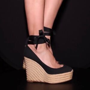 AUTHENTIC LOUBOUTIN BLACK ESPADRILLE WEDGES