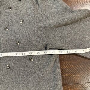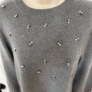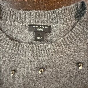 Ann Taylor Factory Pearl Rhinestone Embellished Gray Sweater Petite LP Soft Knit