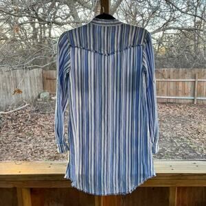 Cloth & Stone Women's Blue And White Striped Long Sleeve Tunic Top Size XS