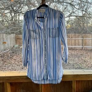 Cloth & Stone Blue And White Striped Long Sleeve Linen Blend Tunic Top Size XS