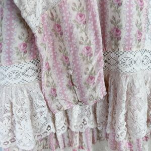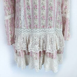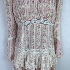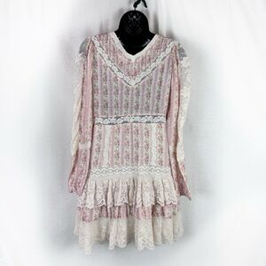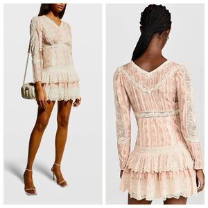 Love Shack Fancy LSF Pirelle Pink Floral Silk Lace Ruffle Mini Dress Size 6