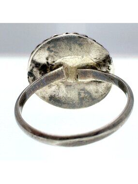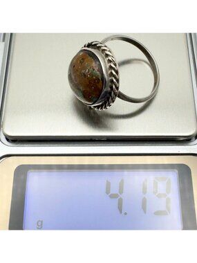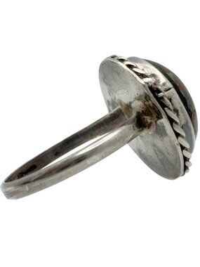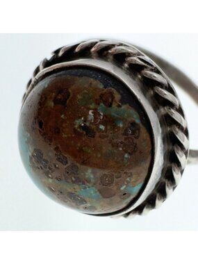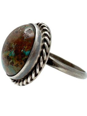 Sterling Silver Ring Turquoise Cabochon Twisted Rope Size 8 Artisan-Made Vintage