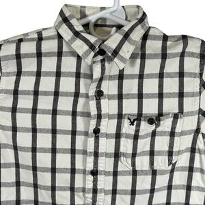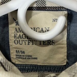 American Eagle Outfitters Mens Medium White Black Grid Plaid Flannel Shirt M