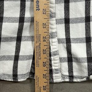 American Eagle Outfitters button-down shirt features a classic white and black grid plaid pattern on a soft 100% cotton fabric. Designed with a standard collar and a single button-through chest pocket accented by the signature embroidered eagle logo. This long-sleeve flannel-style shirt offers a versatile look suitable for casual layering or wearing on its own.