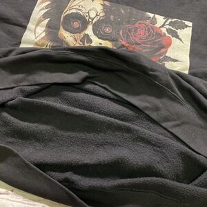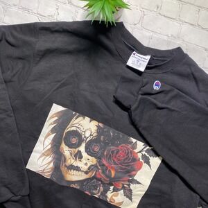 Champion Crewneck Sweatshirt Mens 2XL Black Gothic Grunge Day Of Dead Skull Rose
