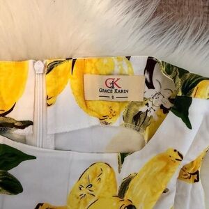 Grace Karin White Lemon Print Fit & Flare Midi Dress