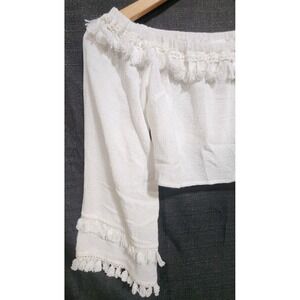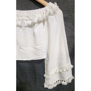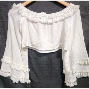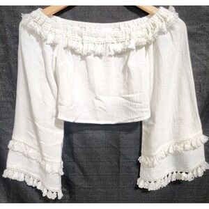 SKYLAR+MADISON White Bell Tassel Sleeve Top Crop Beach Boho Gypsy Festival NWT M
