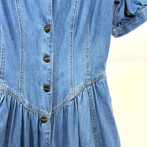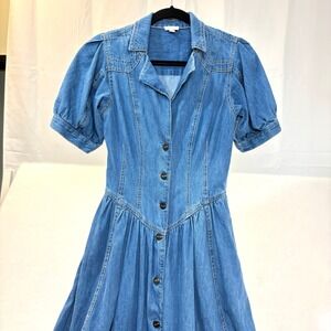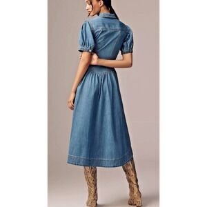 PILCRO & The LETTERPRESS Denim Jean Button Front Puff Sleeve Midi Dress Size 8