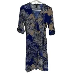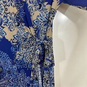 BCBGMaxAzria Adele Printed Royal Blue Roll Tab Wrap Dress
