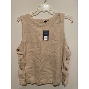 Universal Thread Womens Tan Linen Blend Side Button Sleeveless Shell Top L NWT