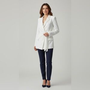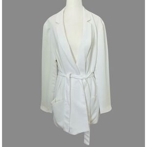 Willow & Thread Blazer Open Front Tie Waist Pockets White Size 16
