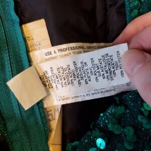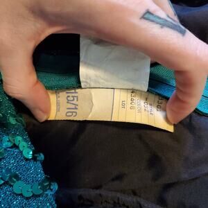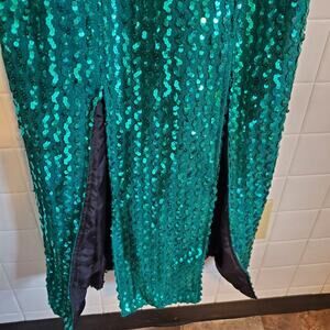 Vintage 80s Teal Sequin Embellished Sleeveless V Neck Mermaid Maxi Dress