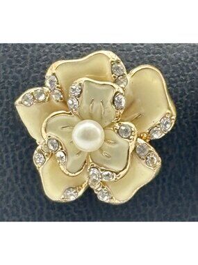 Vintage Enameled Dogwood Post Earrings Cream Enamel Faux Pearl Clear Rhinestones