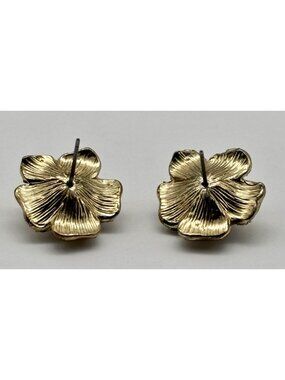 These lovely vintage post dogwood flower earrings feature two layers of petals with a creamy enamel and painted detailing, small rhinestones, gold edges around the small, top layer of petals, and a 4mm faux cream colored pearl in the center. 7/8" diameter. Very good condition. Unbranded.