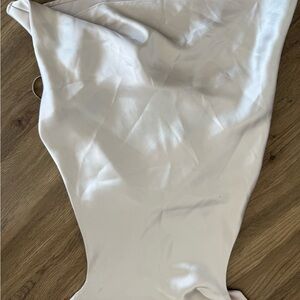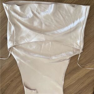 Satin backless top from Zara. Smooth, flowing fabric with minimalist lines. Subtle sheen for a refined look. Perfect for evening or special events.